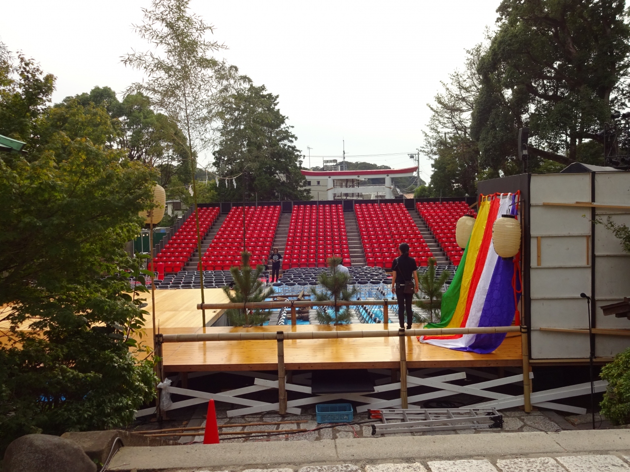 舞台セットになっていて、マイクのテストみたいのもやっててうるさいし