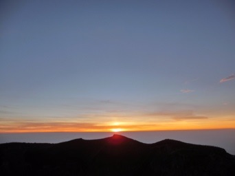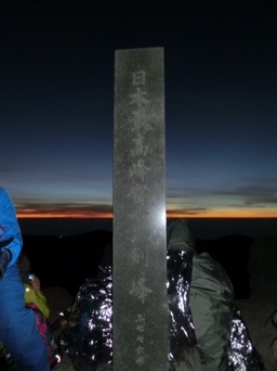 剣ヶ峰、着きました。日本で一番高いところに立っています。それだけで、感慨無量。ここで朝日を待ちます。待つこと30分…太陽が顔を出し、周りから「わぁー」と溢れるのが聞こえます。