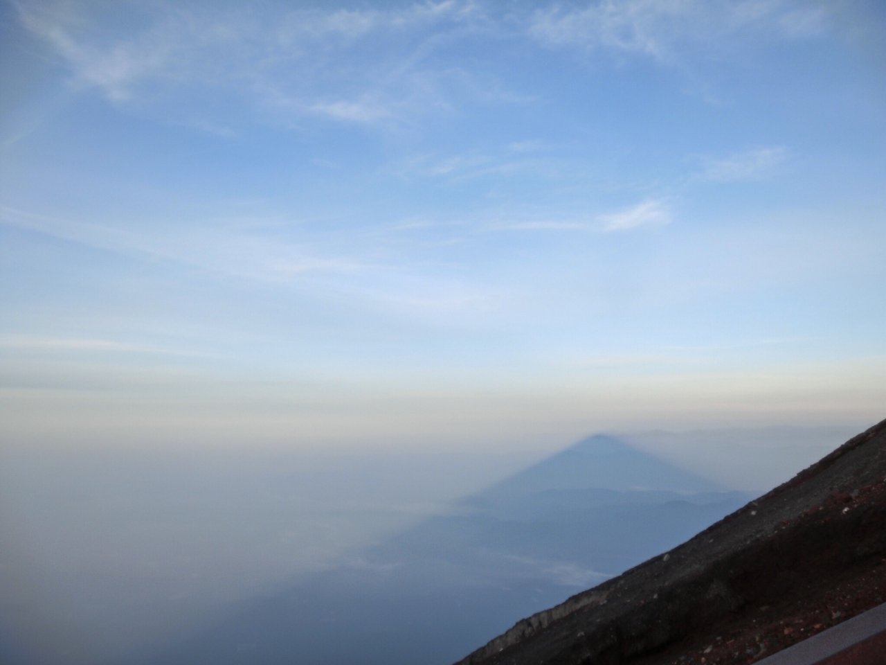 誰からともなく、「美しい御来光に万歳三唱」と声が上がり、その場、その時間に富士山頂上にいた大勢で万歳三唱しました。こういう一体感って良いですよね。
