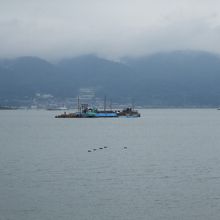 まさに山と湖のハーモニー、諏訪湖って感じですね。