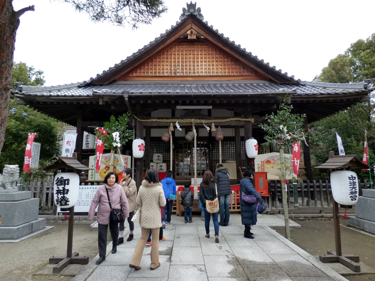 社号標には中津大明神と刻まれていますが、境内の提灯には中津大神宮と書かれています。