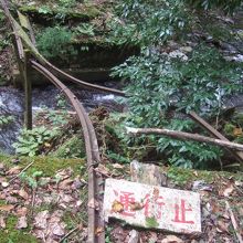 説明の看板があり、上を見ると家があった名残で石垣の一部が見れました。