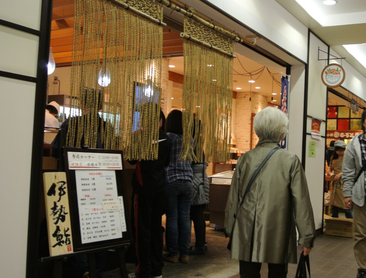 駅マルシェには様々な道産品があり、立ち食い形式の寿司が手頃な料金で食べられます。三貫500円くらいから。