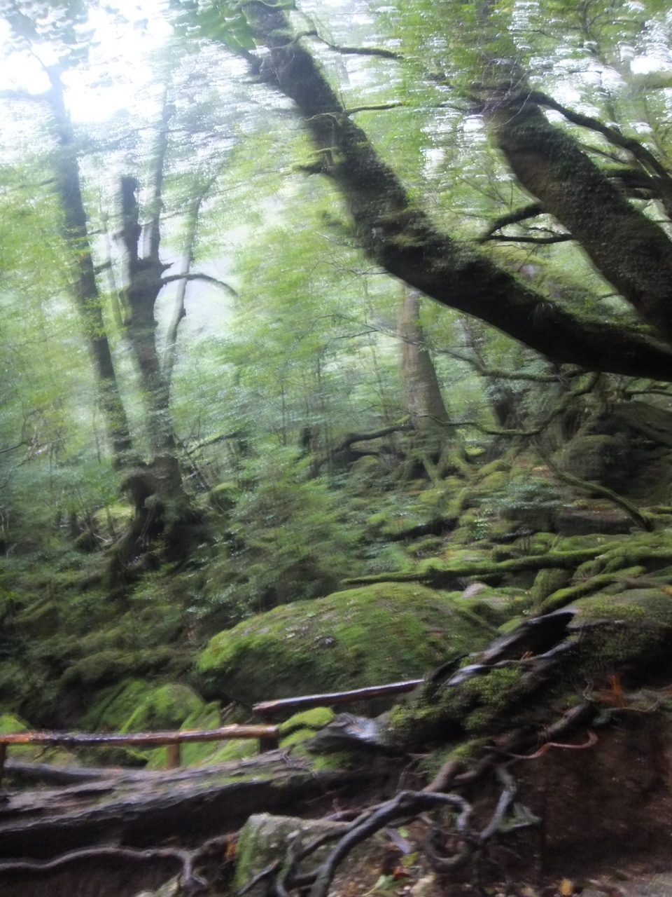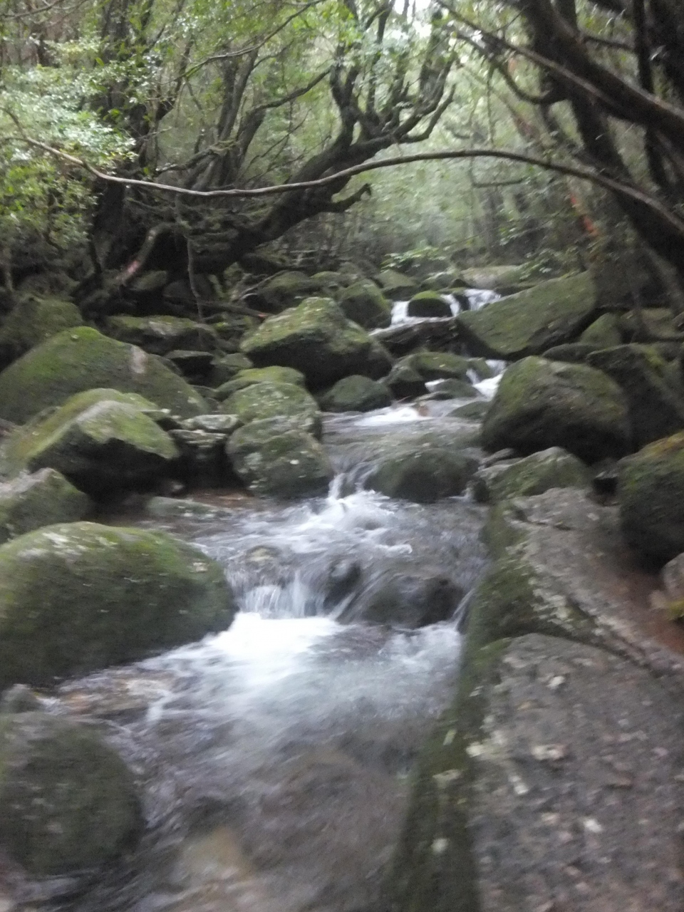縄文杉のトレッキングコースよりはハードではないですが、少し岩を登るようなところもあります。苔の緑と滝の流れの白が美しい光景でした。