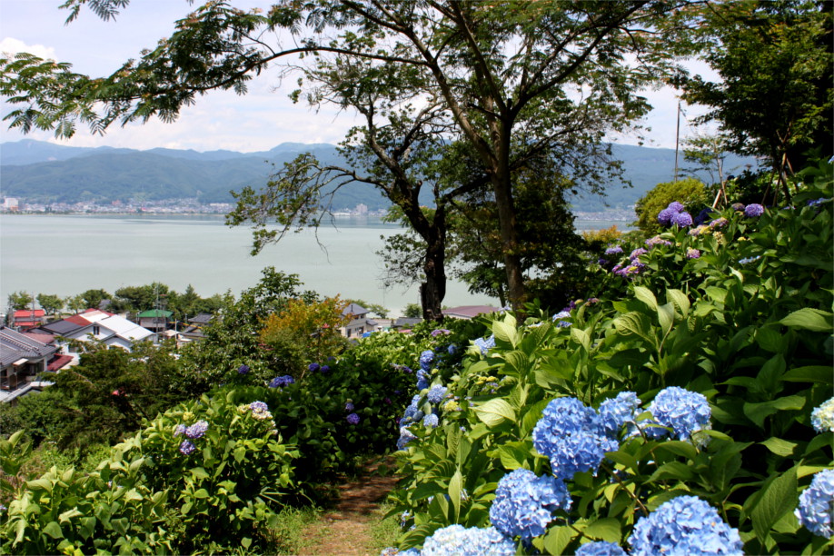 アジサイと諏訪湖の絶景なのだよ