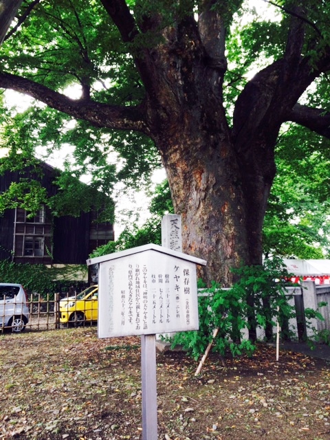 神明宮は、樹齢千年とも言われる大きなケヤキが目印。