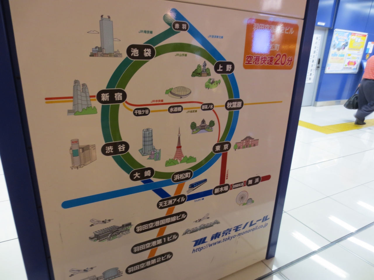 土日祝日限定だったと思いますが、モノレールと山手線を乗り継いで片道500円と言う安さで移動ができました。3路線走るモノレールがあり、各駅停車やノンストップで行くものとあるので、気をつけてください。最終地点の浜松町でしたか、そこまではおよそ20分の移動時間だったと思います。速くて景色が良くて満足です。