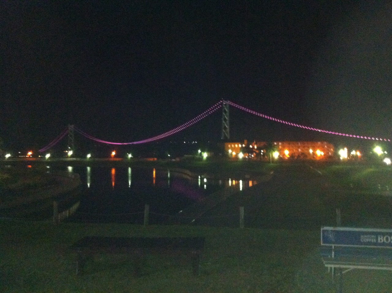 夜の明石大橋はライトアップされていますので、ショッピングで歩きつかれたら、