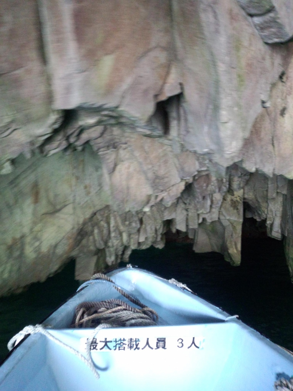 洞窟は、潮の満ち引きの関係で、頭がぶつかりそうになることもあります。