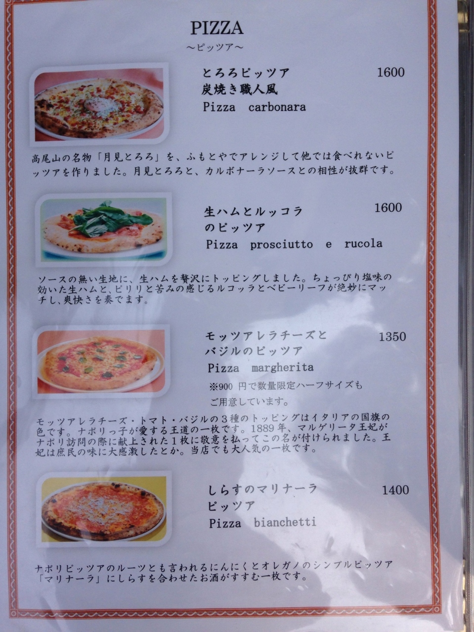 価格は生ハムとルッコラのピザ1600円、ミートソーススパゲティ1100円とハッキリ言って高尾山なのに高いです。