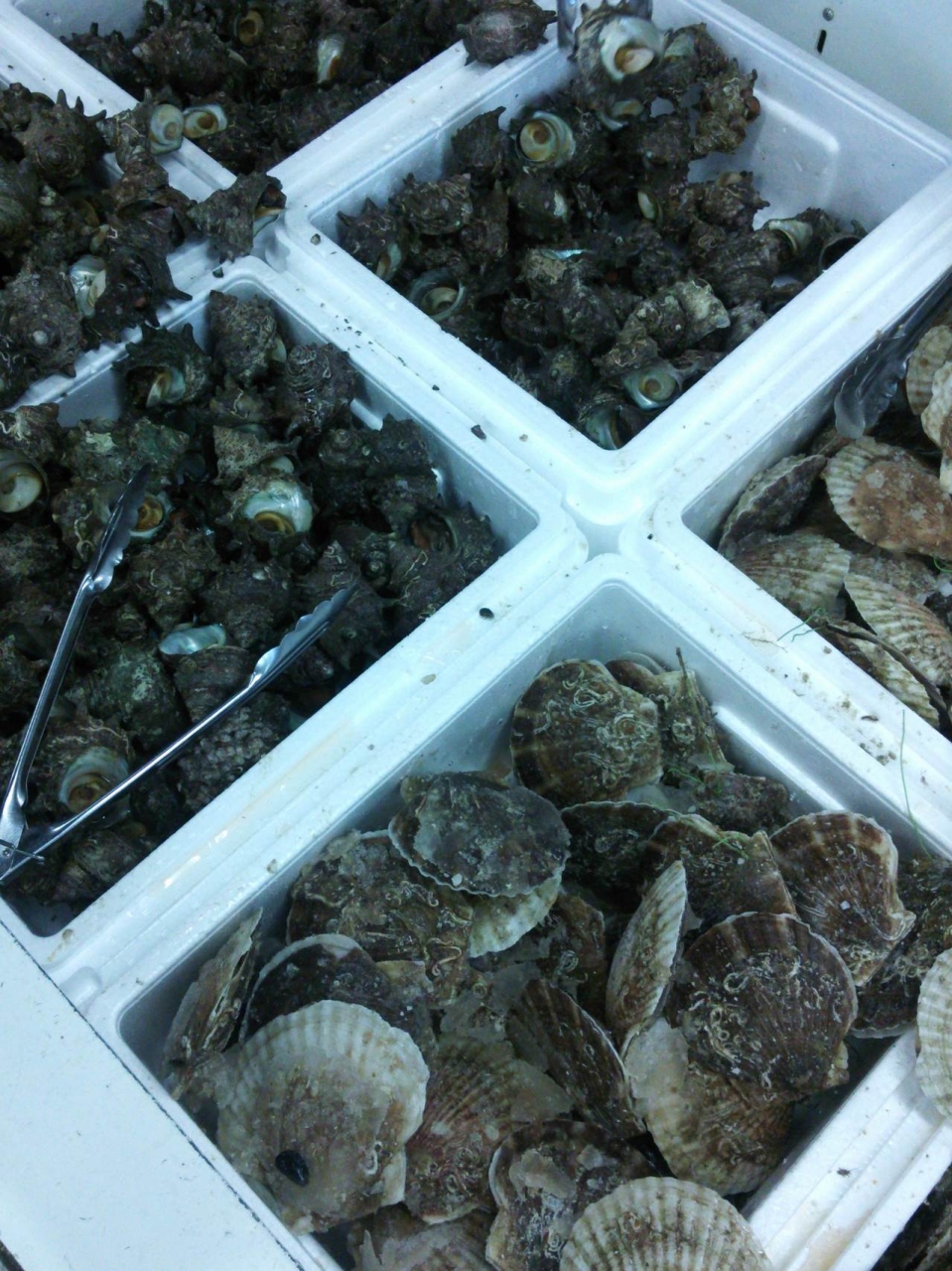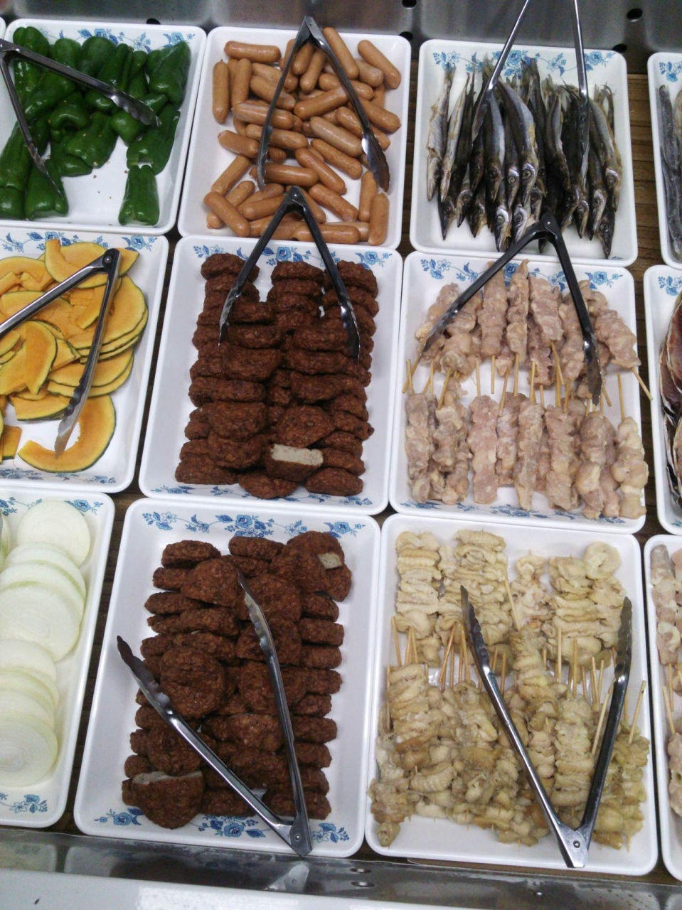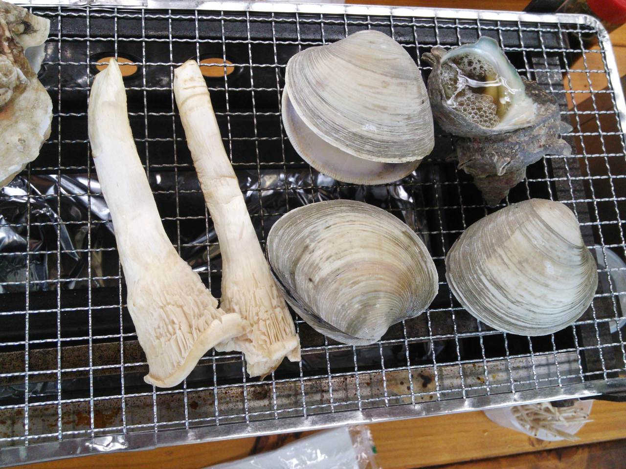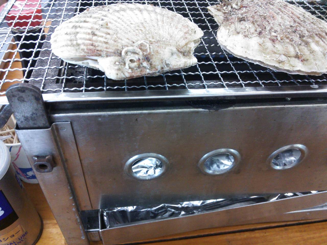 浜焼き、ということで、ホタテなどの貝類や肉などを目の前で、自由に焼いて食べる事が出来ます。