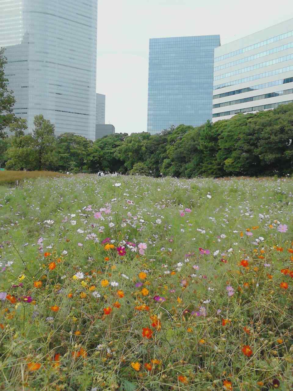 秋の浜離宮 ~台風18号あとのコスモス畑~