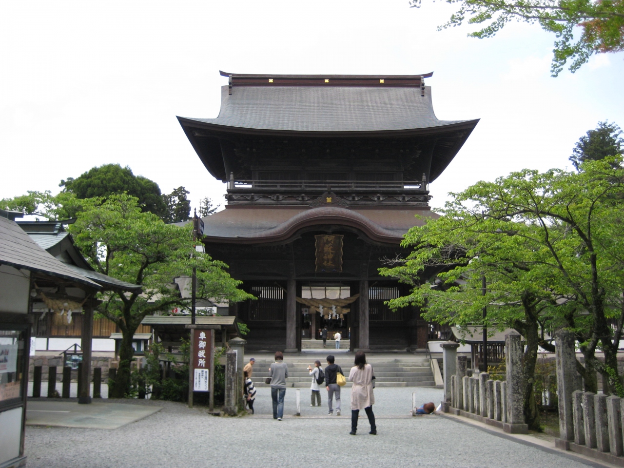阿蘇山に行った後立ち寄りました。阿蘇山の守り神らしく、重厚な門構えに圧倒されます。境内には「願かけの石」や縁結びの「高砂の松」があります。門の周りには食堂も多いので、参拝後に立ち寄るのによいと思います。