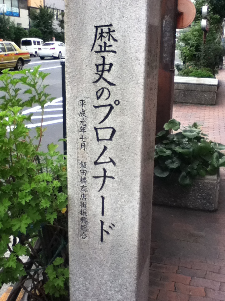 飯田橋の歴史的な遺産を紹介している石柱で、綺麗に保存されていることにも感心