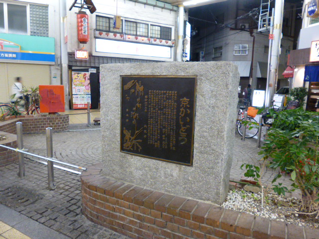 大阪の京橋駅近くのアーケード商店街「ビギン京橋」を歩いていくと、突如現れる石碑です。大阪と京都を結ぶ「京街道」の起点という事でしょうか。商店街のど真ん中に鎮座している姿は、関西地区の歴史を感じさせるものでした。