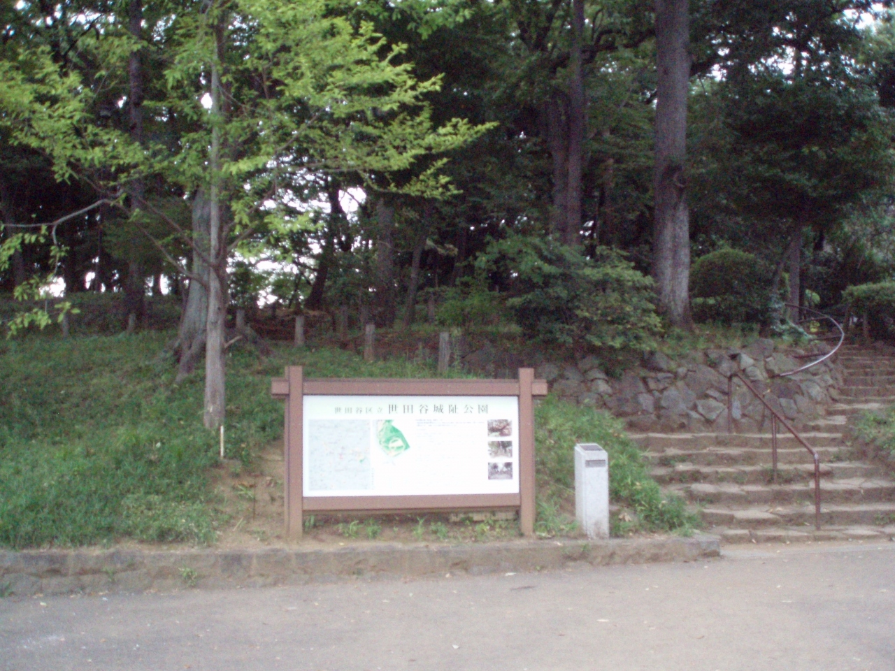 東急世田谷線上町駅で下車して商店街を歩いて10分ぐらいで木が覆い茂る世田谷城阯公園に着きます。世田谷城址公園は住宅街の静かな、のんびりちょっと一息つける公園という感じで、起伏があり、空堀や土塁が現存する世田谷城の跡地にある緑豊かな丘公園です。