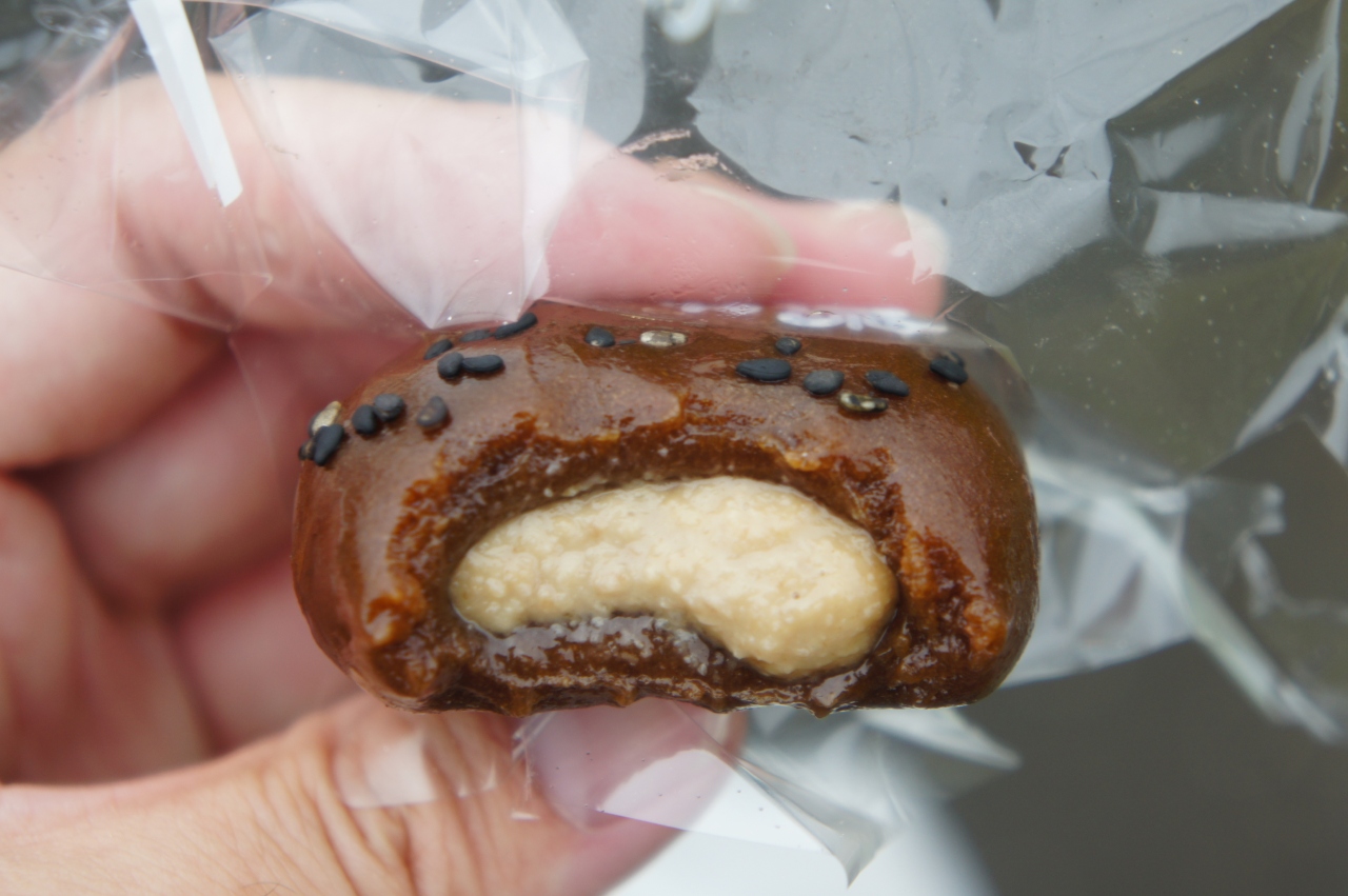鳴子ゆべしをいただきました。なんでも鳴子を付けるのは安易だなあとも思いましたが、食べると中の餡は白。茶褐色と白のコントラストが斬新。それにこの白は白ゴマの白。ごまの香りもしっかりあって、申し訳ないんですが予想外のうまさ。ひょっこりいいお店に出会いました。
