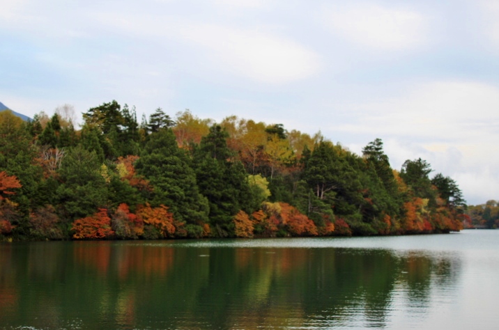 湯ノ湖兎島は、湯ノ湖に浮かぶ島ではなく湯ノ湖東岸に突き出した小さな半島です。湯元温泉街に近い湖畔からよく見えます。10月10日に行きましたが兎島の辺りは丁度紅葉の見頃でした。湖面に映る紅葉も絵になります。