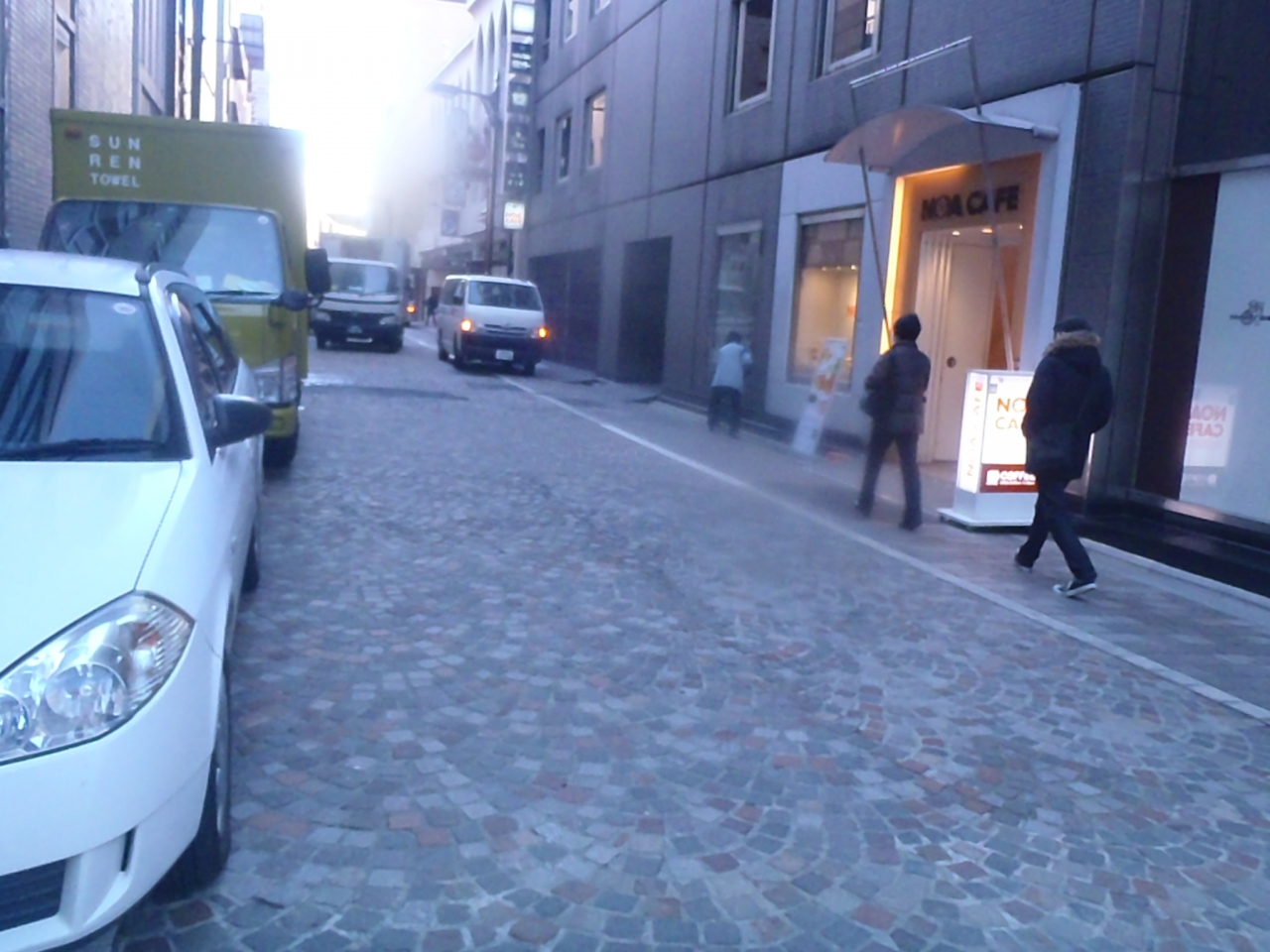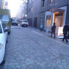 中央通りと比べるとかなり細い通りで、中央通りに面しているビルの裏通りと言うイメージの通りですが、石畳の通りには多くの飲食店があり中央通りとは違った趣のあるとおりです。