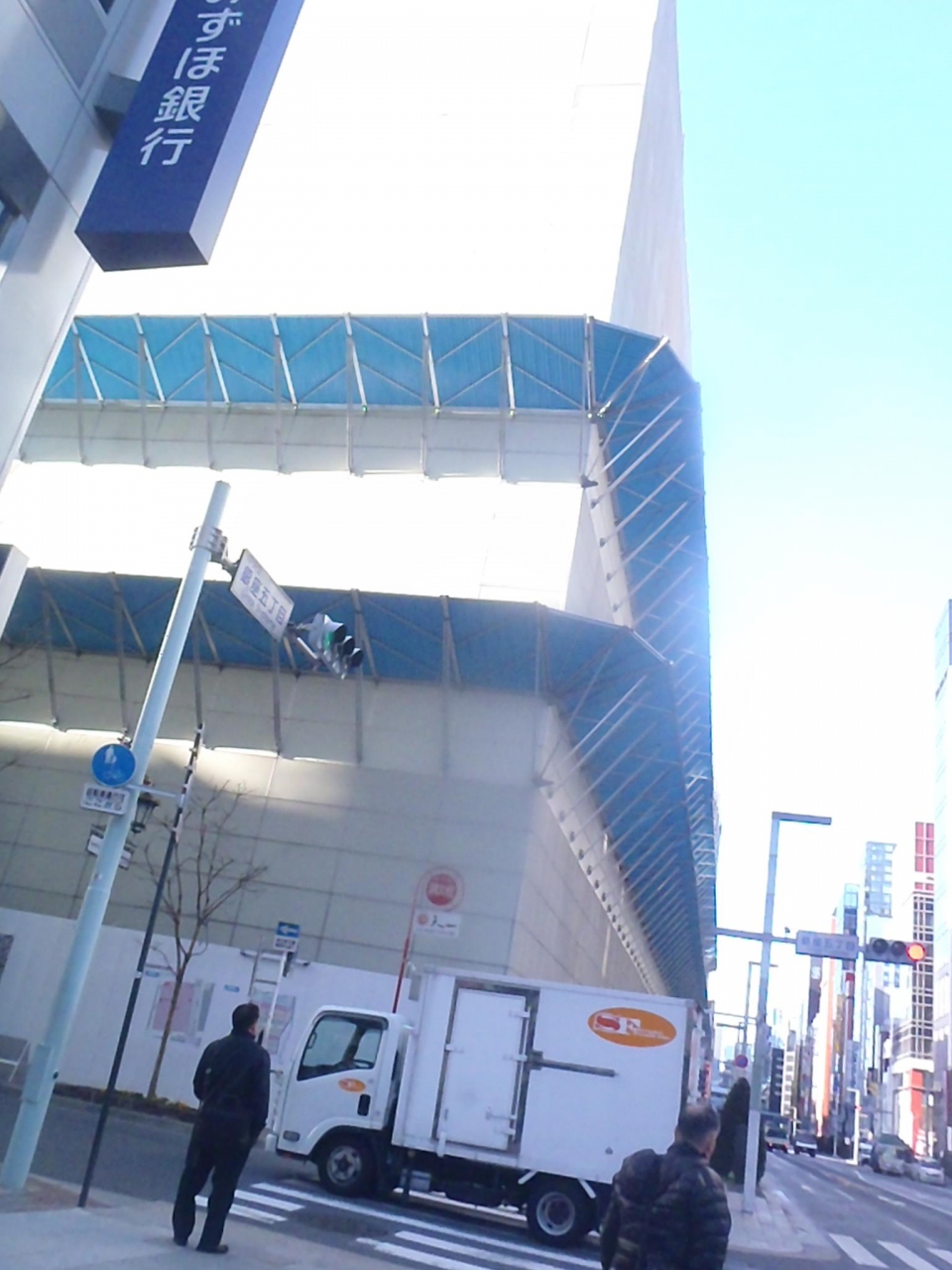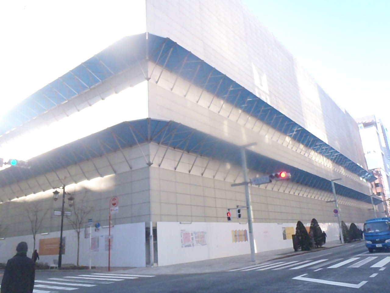 現在改修中の銀座松坂屋百貨店、銀座のど真ん中を北から南に横切る中央通りとみゆき通りの交わる銀座五丁目交差点に面している老舗百貨店です。
