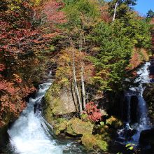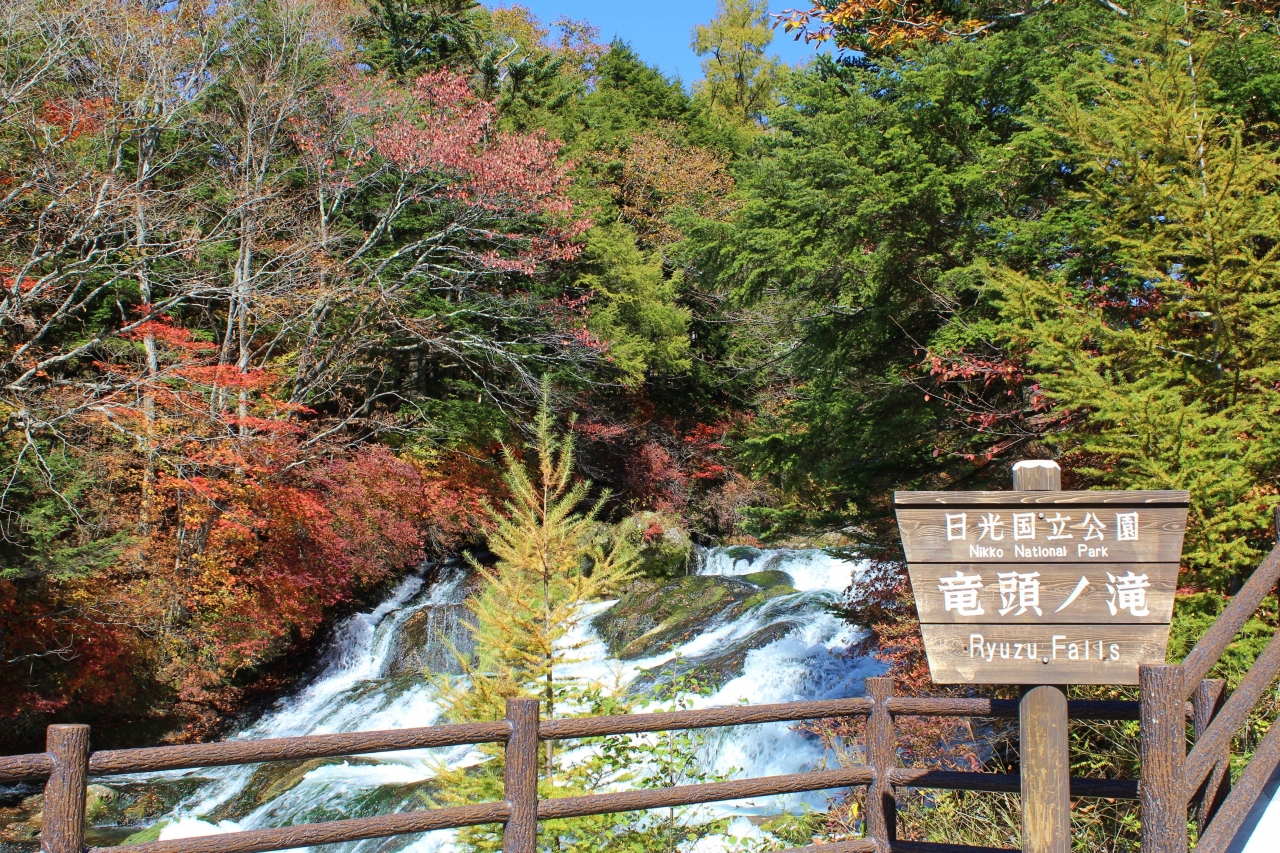 竜頭の滝は、日光駅から湯元温泉行きの路線バスで約1時間の竜頭の滝バス停から直ぐです。滝壺前の茶屋から、左岸の自然研究路から、滝の上の橋から滝を見ることが出来ます。竜頭の滝だけなら滝上のバス停で降りて左岸の自然研究路を下って茶屋まで歩く方が楽です。紅葉の名所でもあります。