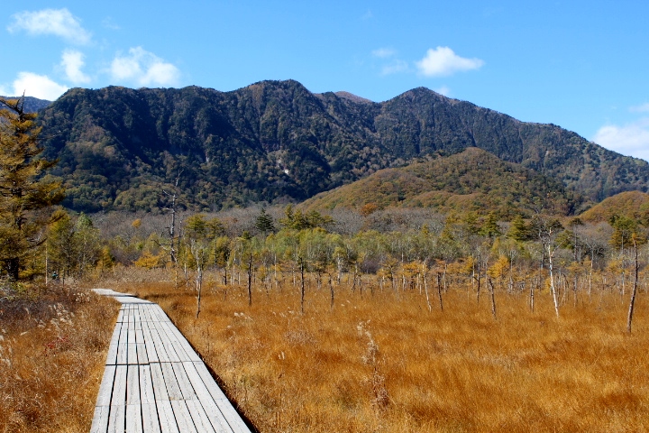 戦場ヶ原は、奥日光の三方を山に囲まれた湿原で、西端を湯川が流れています。湯川沿いに木道が整備されていて、アップダウンのない非常に歩きやすい遊歩道です。眺望の良いところは木道が広くなっておりベンチも設置されています。天気が良い日に山並み・湿原を見ながら食べる弁当は美味しく感じます。