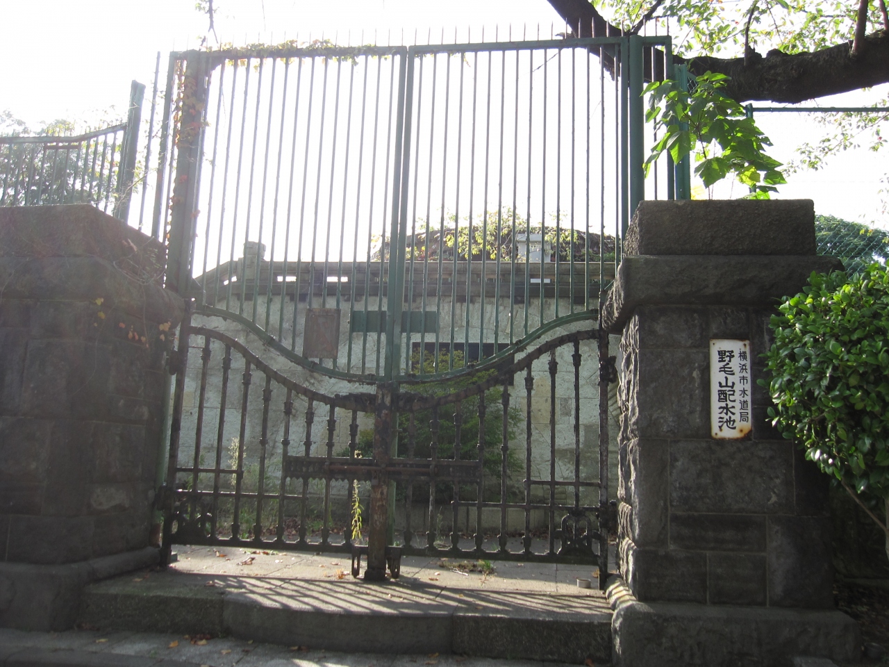 野毛山動物園から野毛山公園展望台に行く途中にあります。歩道橋を渡った側が表だったみたいですが、私たちは裏を通りました。錆びた門扉が歴史を感じさせます。