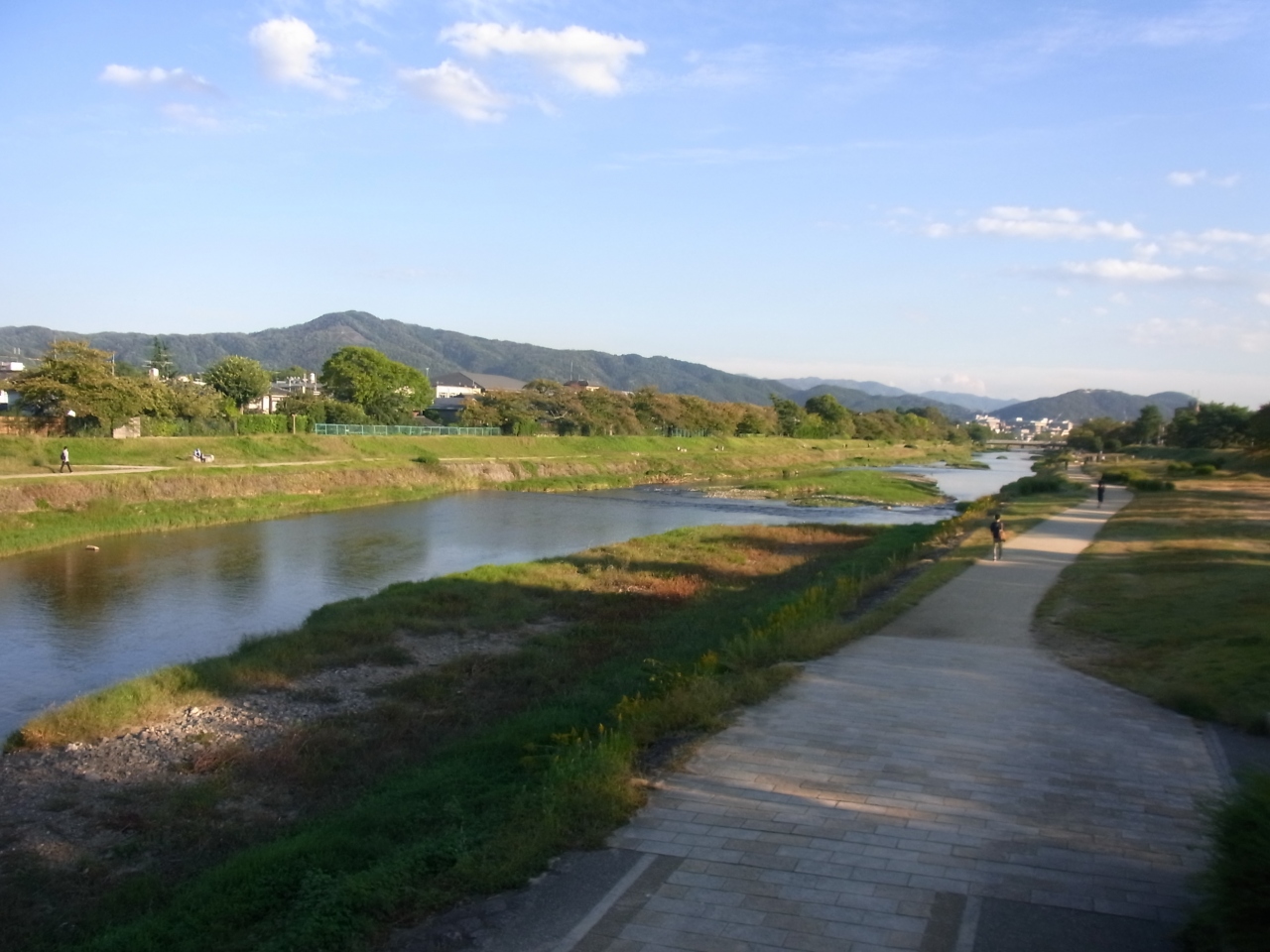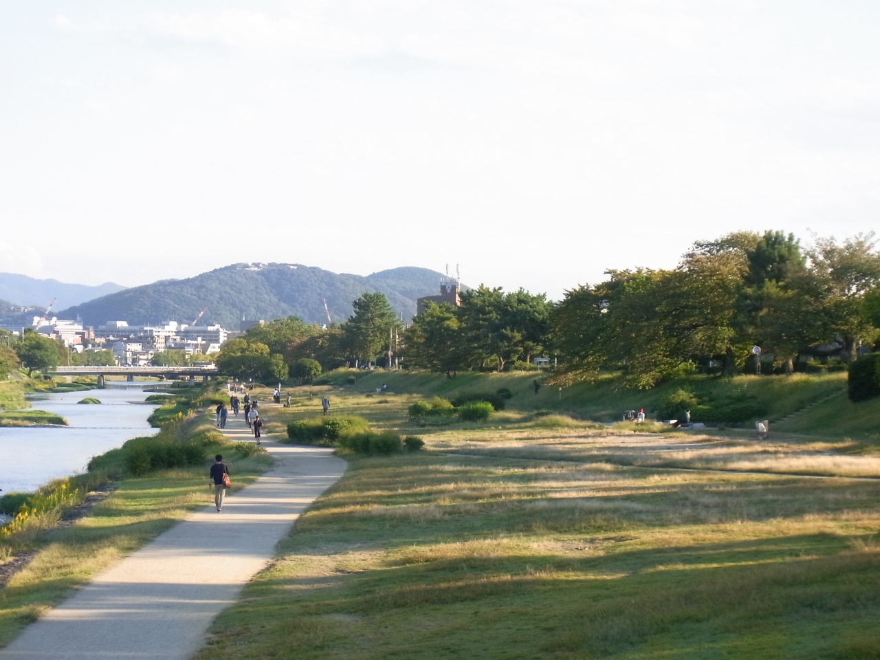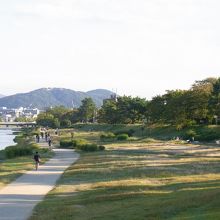 鴨川はいわずとしれた京都の観光スポットですが、私は断然、葵橋~北大路までのエリアが好きです。鴨川と高野川が合流する、「鴨川デルタ」は人が多いにぎやかなイメージですが、それと比べるとのんびり広々としていて、日光浴・ジョギング・読書・楽器など、人々が思い思いにのんびりと過ごしています。また、大文字山が見えるのでいかにも京都らしくて好きです。
