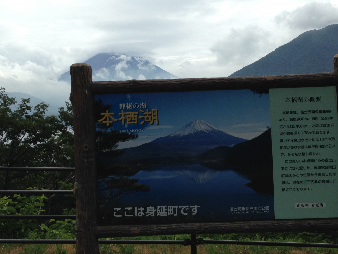 千円札の富士を見に、千円札を握りしめて行ってみたけど、あいにくの天気で富士山がうっすらとしか見えず。本栖湖に映る逆さ富士は全く見えず。とても残念。