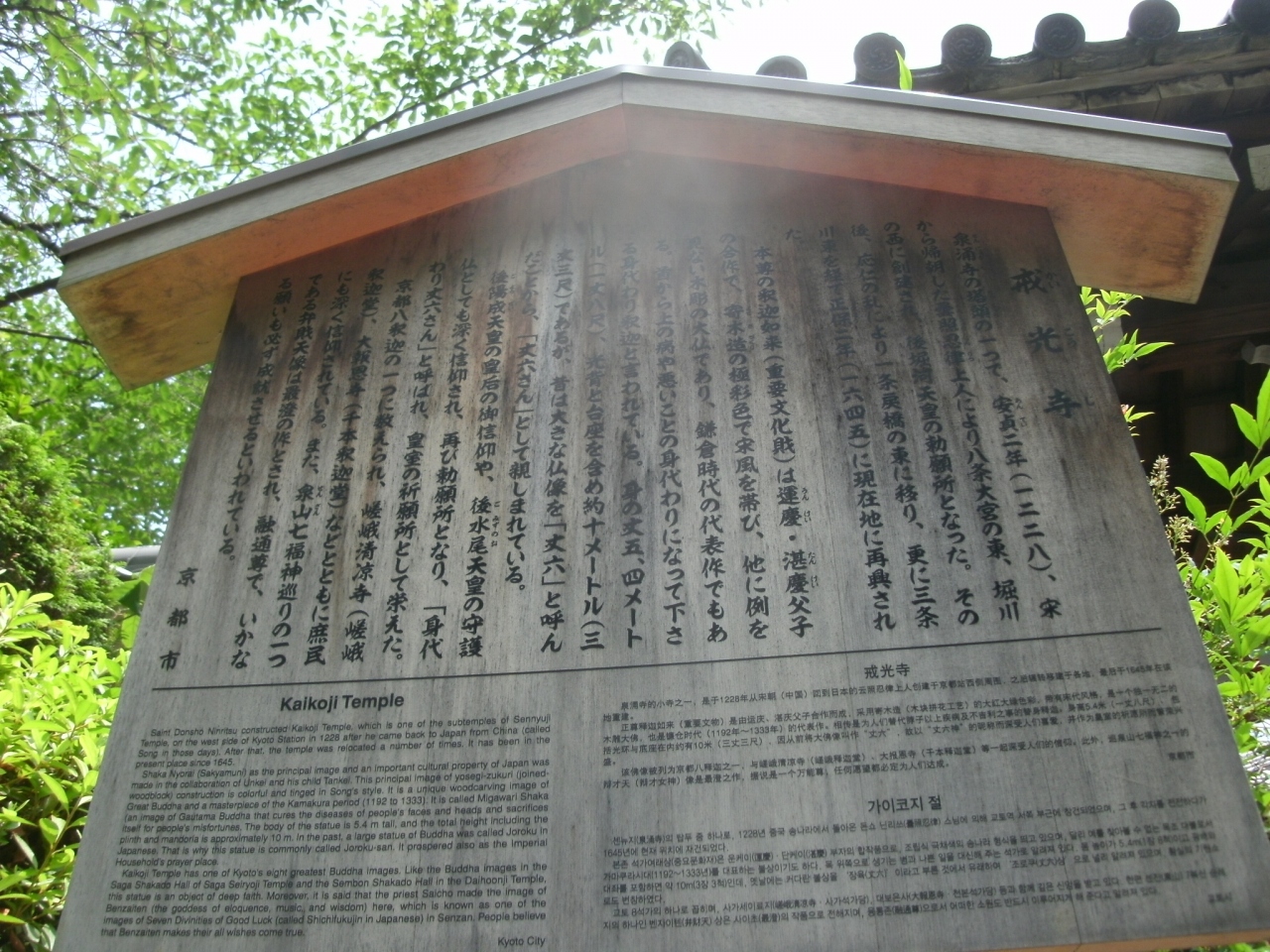 なお、このお寺さんのご本尊は、身の丈約5.4メートルもある大きな釈迦如来像で、丈六(六尺)あることから、“じょうろく”さんと呼ばれて親しまれているそうです。丈六さんの首の辺りには、後水尾天皇が暗殺者に寝首を掻かれそうになった時に、丈六さんが身代わりにたたれ、ついたものだといわれている血の跡の様なものがあります。そのため、「身代わり丈六さん」とも呼ばれ、首から上の病や悪しき事の身代わりになって下さるご利益があるそうです。