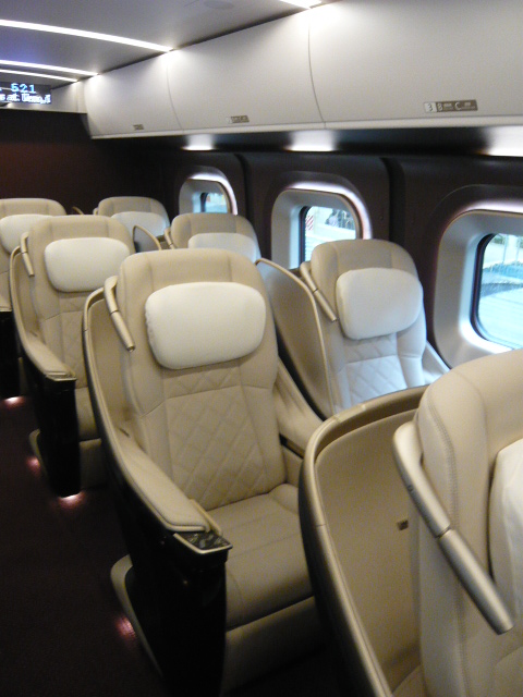 軽井沢まで行きはグランクラス、帰りはグリーン車に乗車。グランクラスはプラス約5000円、グリーン車はプラス約2500円。違いを比較するとグランクラスのシートは超リラックスできて座り心地、機能が全然違いました。雑誌は3冊と2冊、荷物入れは飛行機と同じふた付きのゆったりスペースでスーツケースも余裕で入りました。車内販売は女性が写真付のメニューを持ってきて注文しグリーン車はワゴンサービスでした。トイレは共用でしょうか?グランクラスは差額2500円以上に満足でした。