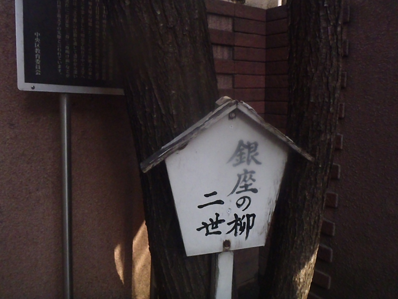明治に入って街造りに街路樹に柳が選ばれた、柳の木は軟弱な土地に強いことから埋立地のこの地に向いているのだが、道路拡張や空襲で焼失などしたがその度に植え替えられたことから二世があるとのことです。