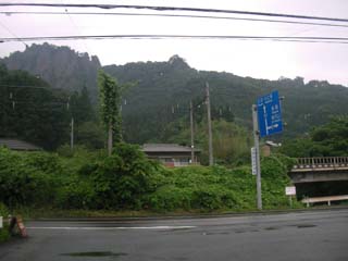 吾妻線の郷原駅に出るとと少し離れたところにパン工房の看板があり、次の列車まで時間があるので寄っていきます。店内をひととおり見て激辛焼きカレーパン(160円)とフィシュバーガー(110円)を買って、店の前のテーブル席で食べていると、駐車場に何台か車が停車してパンを買っていきます。岩櫃山が正面に見ながら、辛いカレーパンを頂きました。