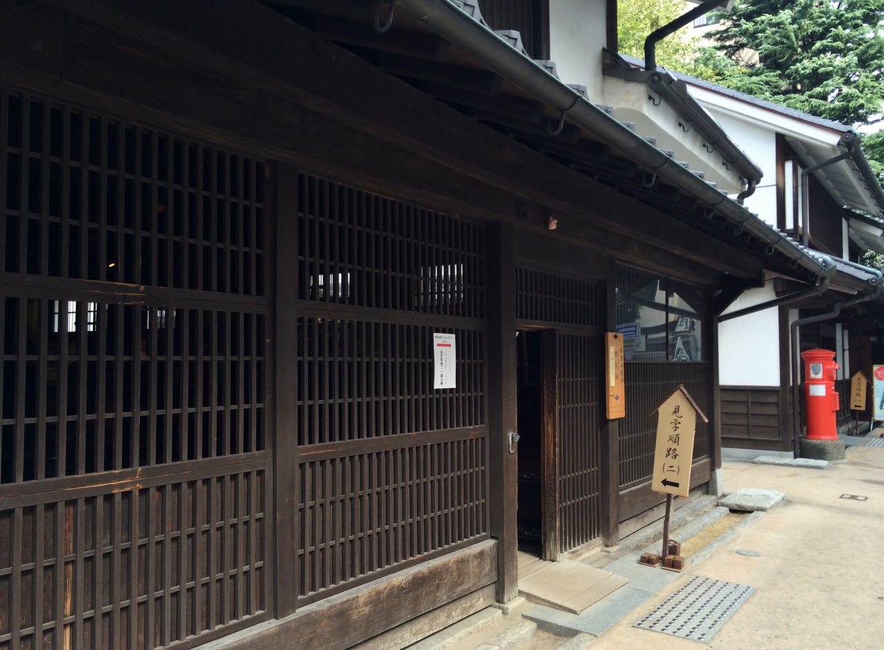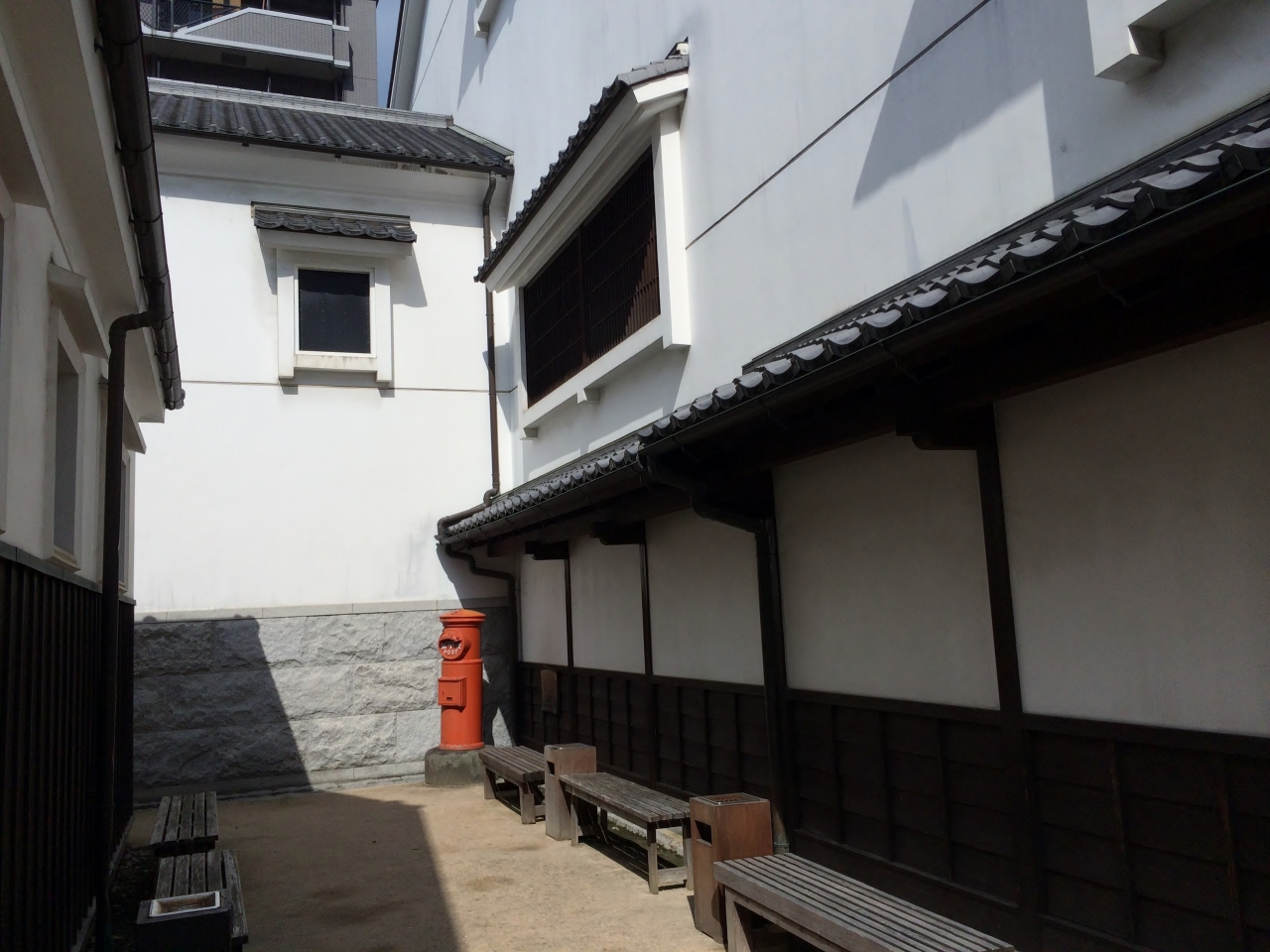 櫛田神社の正面近くにありました。町家の造りを再現し、明治、大正時代の博多の暮らしと文化を紹介する展示館だそうです。
