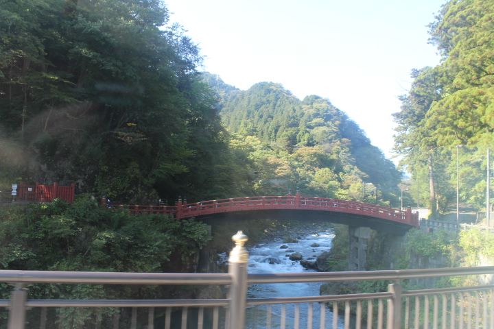 神橋は、日光の大谷川に架かる赤いアーチ型の木橋です。日光東照宮を観光するときは初めに立ち寄ると思いますが、日光駅からバスで奥日光に行くときにはバスの車窓から見ることが出来ます。丁度日光橋を渡って左折する際バスは減速しますので、日光橋を通過するときにばっちり見えます。バスの左側の席がお勧めです。
