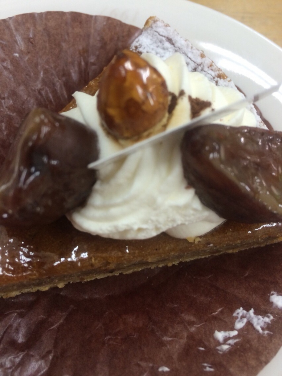 大好きなパティスリーのひとつ、アルションです。大丸のショップは小規模です。ケーキの種類も少なくどちらかと言うとマカロンと紅茶に力を入れているようです。今回はマロンタルトに。濃厚マロンテイストでめちゃくちゃおいしい!!