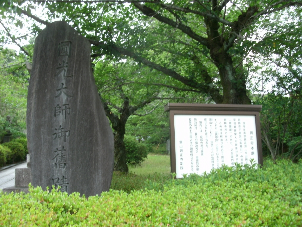 参道を進んでいくと急な階段があり、その先に霊山本廟があります。親鸞聖人のご廟所や法然上人別時念仏碑があります。