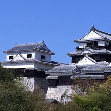 市内中心部から簡単にアクセスできる松山城は、登り石段が配された連郭式平山城です。勝山山頂にある本丸にはロープウェイまたはリフトを利用すれば疲れません。天守閣からは東西南北、市内を一望することが出来、さながら松平のお殿様気分を味わう事ができます。