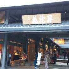 嵐電の嵐山駅の真ん前にあります。お土産物屋がそろっています。