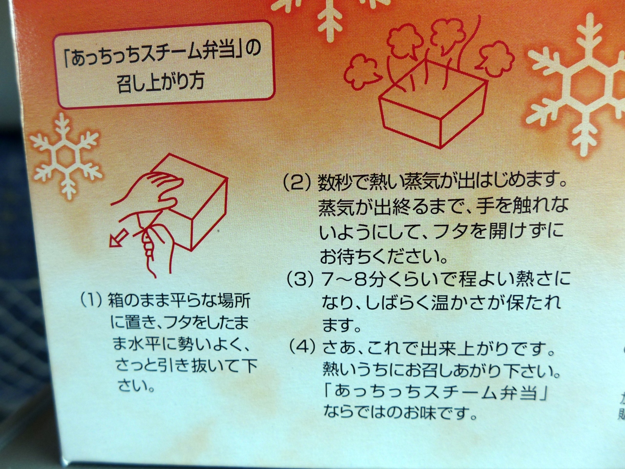 駅弁の数はとても多くて迷いましたが、熱々のお弁当が頂ける「あっちっちスチーム弁当」のバリエーションの中から「神戸名物すきやき御飯」(¥1,000−)を選択。