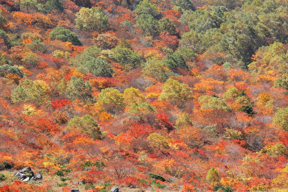 - 火山の景観、大地の眺望、そして山稜の素晴らしい紅葉