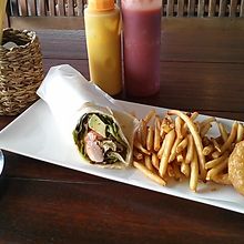 白い砂浜がきれいな豊崎美らSUNビーチにあるカフェです。メニューは洋風料理でデザートやドリンクの種類も豊富です。店内はゴージャスな雰囲気ですが、テラス席は海に面していて気持ちがいいです。多少暑くてもテラス席をお勧めします。