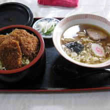 先日、会津の鶴ヶ城近くで食べたソースカツ丼とラーメンのセットがこの店にもあったので、ヨシっ食べ比べだ!ってことで、即決定!