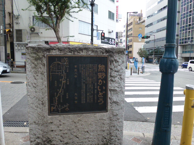天満橋駅の近く、土佐堀通りの南に「熊野かいどう」と書かれた史跡がありました。