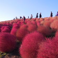 目的のコキアは見事に茜色に染まり、かなり見応えがありました。遊園地だけでなく、芝生の広場などもあり、1日を費やす価値のある施設です。