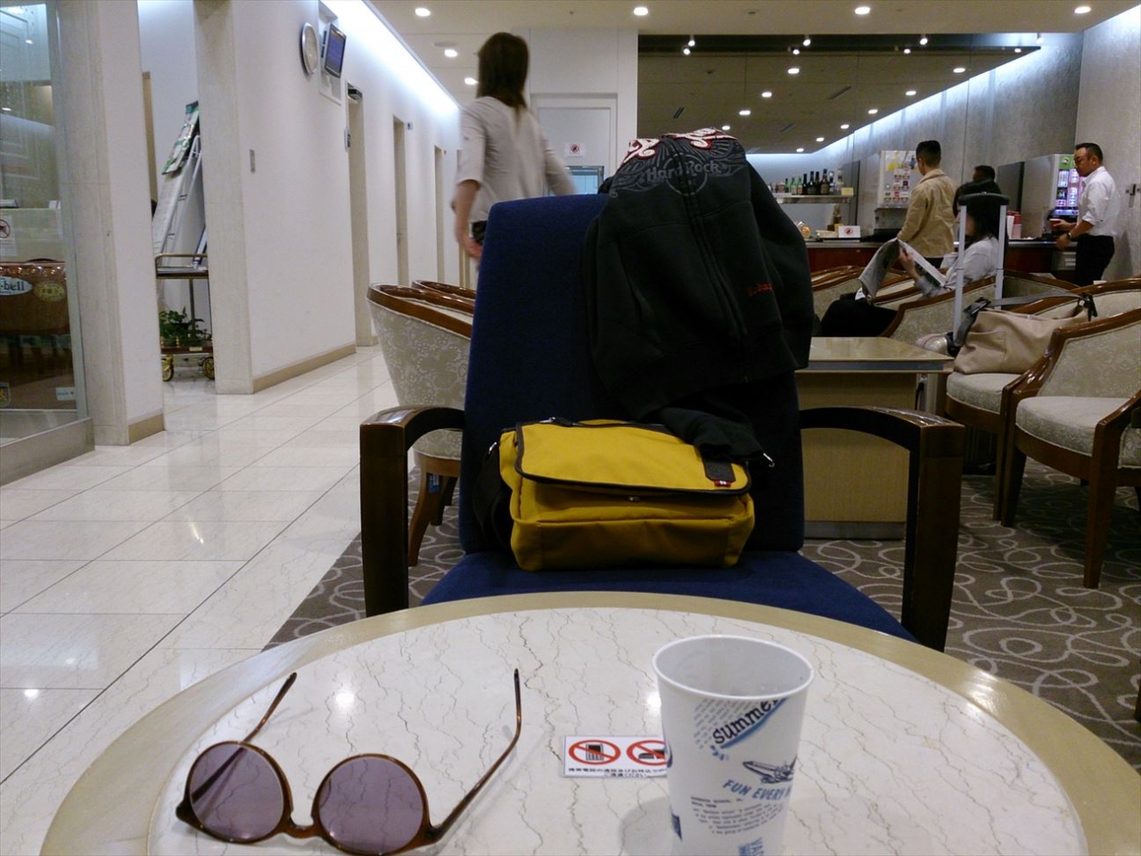 航空会社のラウンジにあるような軽食はありませんが、おかきみたいなのはあったようです。