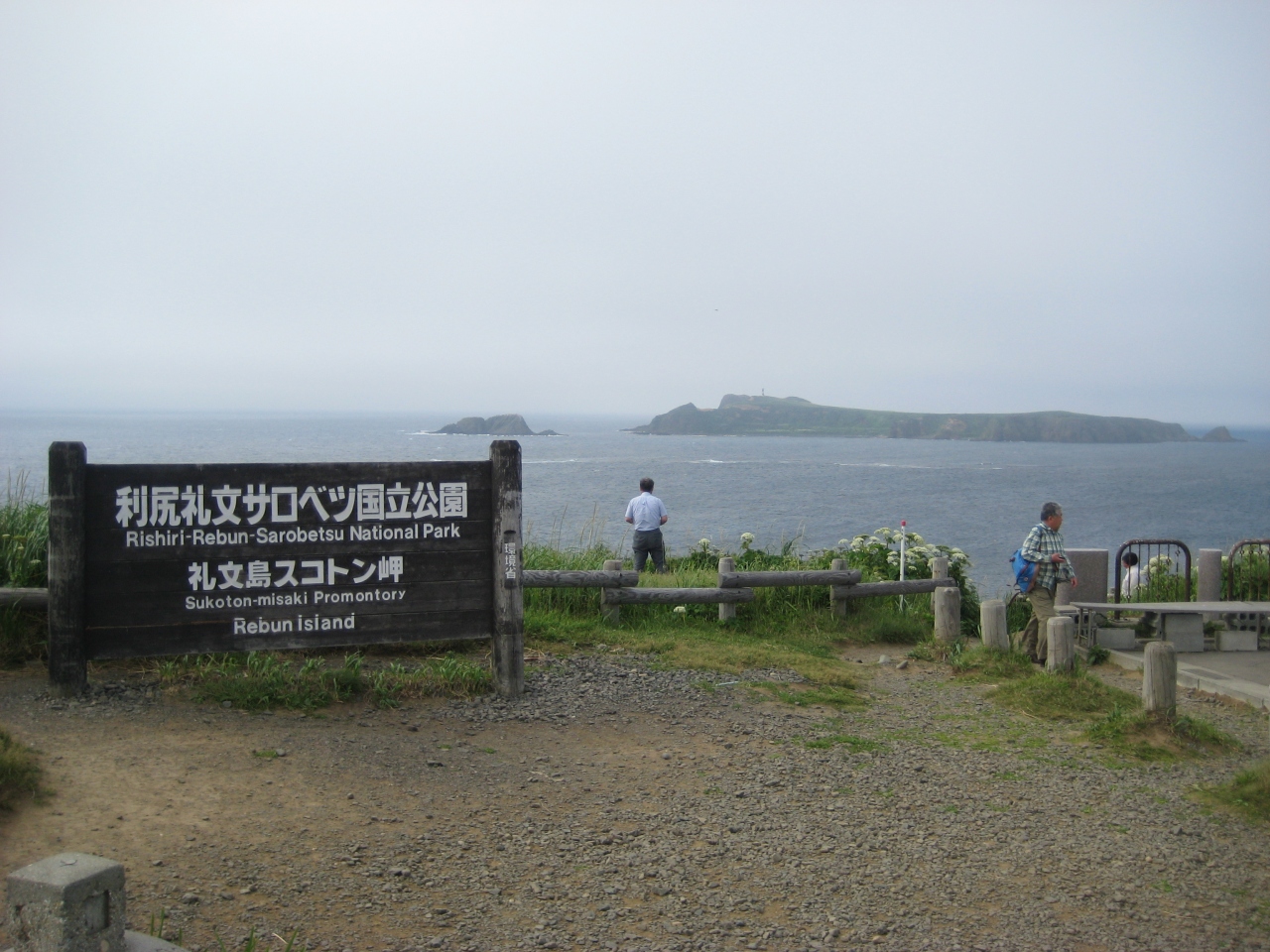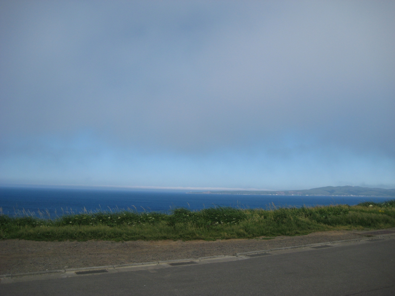 礼文島の最北端の岬で正面にはドドが多く生息するトド島が見えます。晴れていたらサハリンも見えるようです。駐車場から階段を下がって展望台まで行きます。途中にお花畑もありました。ここも風が強かったのですが、海はとても綺麗でした