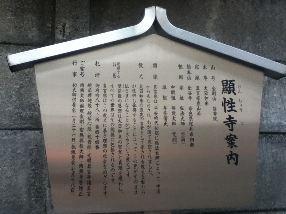 JR信濃町駅と地下鉄四谷三丁目駅のほぼ中間、外苑東通りの左門町交差点から東側の路地の奥にある真言宗のお寺。入口はやや狭く、奥に本堂がある。観光要素は少ないが、御府内八十八ヶ所霊場の内の44番になっていて、境内には八十八ヶ所の道しるべ石が建っていることから、特に弘法大師や御府内八十八ヶ所霊場に関心や知識がある方にとっては興味深い施設であり、訪問することをお勧めする。