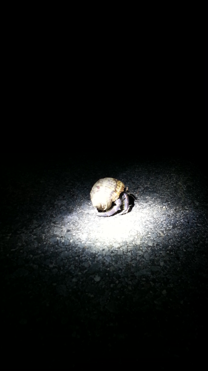 木に止まって擬態しているナナフシ、砂浜に隠れてる数種類のカニ、ヤドカリやそれを求めて出てきているはずのヤシガニを探したりして、子供のように楽しみました。
