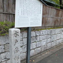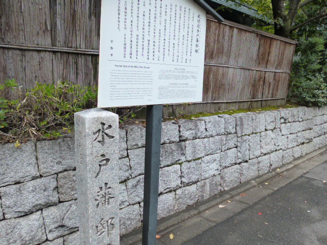 京都御苑、蛤御門近く、護王神社と、京都ガーデンパレスホテルの間の通り沿いに碑が建てられています。この辺りは、江戸時代に水戸藩邸があった場所で、明治の初め、藩邸が廃止されるときには、1300坪以上の敷地だったそうです。